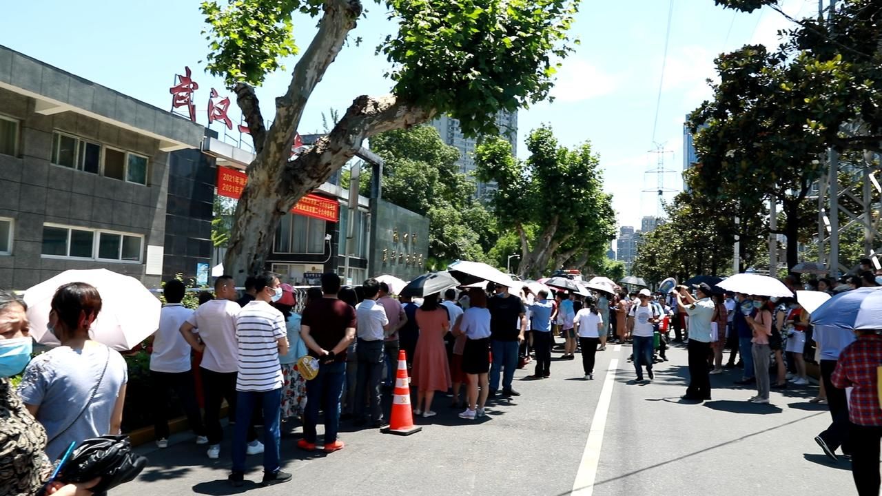 硚口區(qū)二十六中考點(diǎn)外等候的家長(zhǎng)們